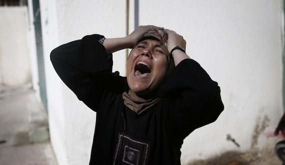 Tell that to these boys, screaming their pain and grief at the world that is only just waking up to the reality of his life under occupation.