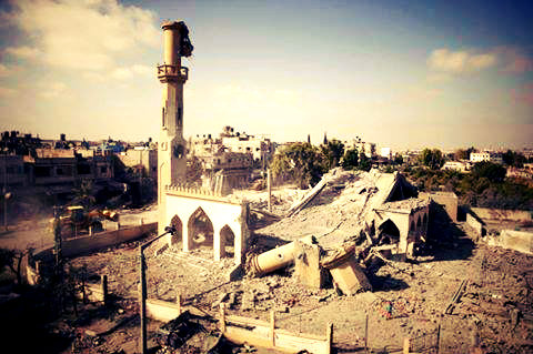 “In the aftermath of Operation Protective Edge, Israel’s 51 day military assault, the Palestinians in Gaza are faced with the huge task of reconstruction. Most of the shattered civilian infrastructure can be replaced, but Palestine’s cultural heritage in Gaza, built over a thousand years and more, has been damaged irrevocably. Many of Gaza’s most ancient sites have been left in ruins by Israel’s attack on the territory. Houses of worship, tombs, charity offices and cemeteries have all been damaged by the shelling, but Gaza’s historic mosques have been the worst affected. Many of these sites date back to the time of the first Islamic caliphs, the Ottoman Empire and the Mamluk Sultanate.
