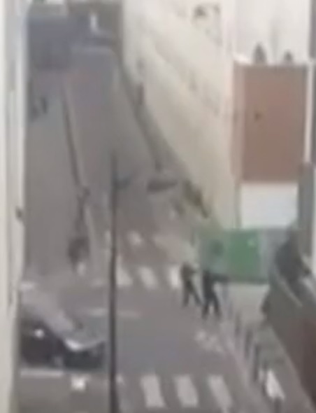 He is also seen very clearly, with his companion, in the video taken by Martin Boudot from the roof of Charlie Hebdo.
