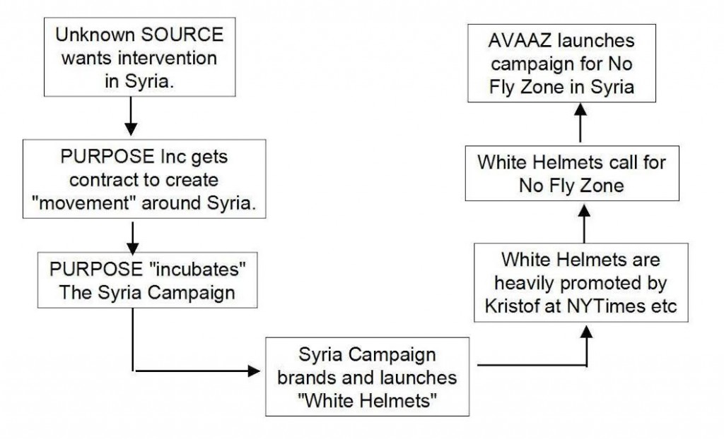 This illustration from Rick Sterling’s article demonstrates clearly the role of White Helmets in justifying the No Fly Zone