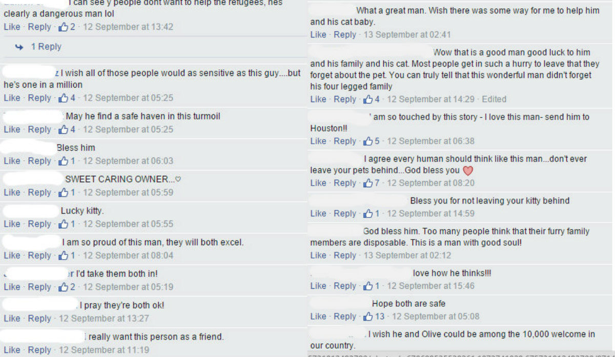 I will be investigating the far more serious aspects of this propaganda in other articles being incubated as I pen this little aside. However, the viral tide of social media “empathy” with the Syrian refugee who saved his four legged feline bundle of sentimentality has motivated me to put fingers to keyboard. I have been reading unbelievable outpourings of sympathy and mawkish romanticism in relation to the young man who has been photographed clutching said bundle of fur to his chest having refused to abandon his kitty during his epic voyage, fleeing the horrors of Syria.