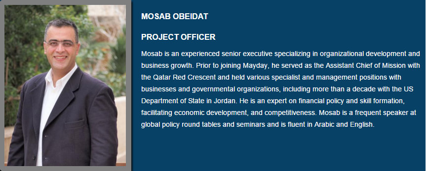 Mosab Obeidat, previous Assistant Chief of Mission with the Qatar Red Crescent, one of whose officials, Khaled Diab was accused of supplying $ 2.2 m to secure arms for the terrorist groups in Syria. Details of this transaction and its exposure can be found in this Al Akhbar article from June 2013. http://english.al-akhbar.com/node/16160