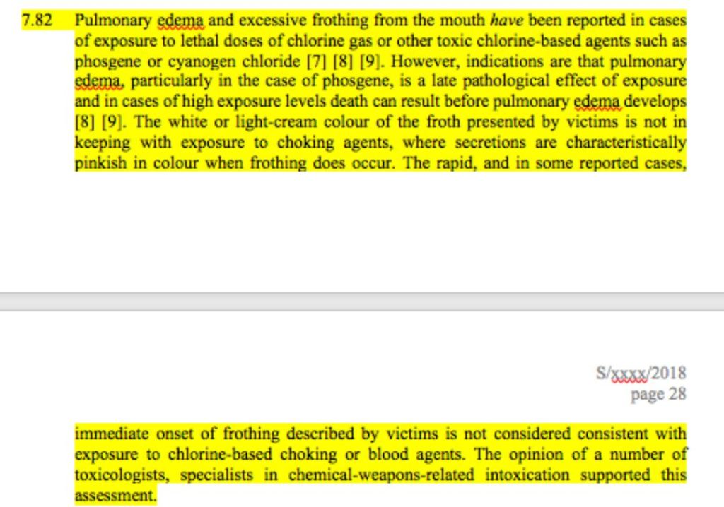 12: However, the original interim report makes clear that the observed scenario is not consistent with chlorine poisoning whilst the final report obfuscates this fact and does not refute the opinion of the toxicologists originally consulted: