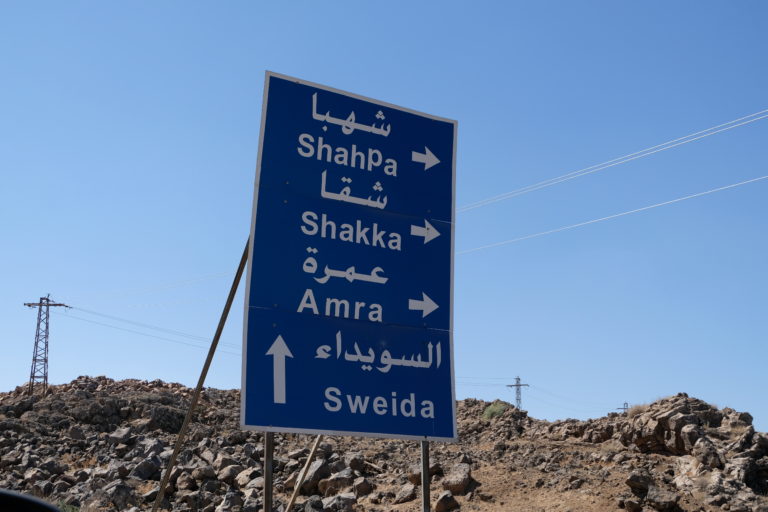 Road sign to Sweida. (Photo: Vanessa Beeley)