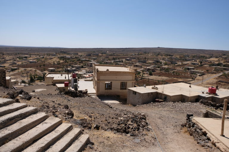 Hazem welcomed us in the traditional Sweida Madafa – the welcome room – of his family home. The sun poured through the glass onto the beautiful marble floor and chairs arranged around the sides of the room to provide a space to talk. Hazem recounted the appalling acts of violence committed by the ISIS terrorists who had entered the towns from the direction of the US base at Al Tanf, to the north-east of Shbeki, Shrehi and Rami..the villages I was able to visit.