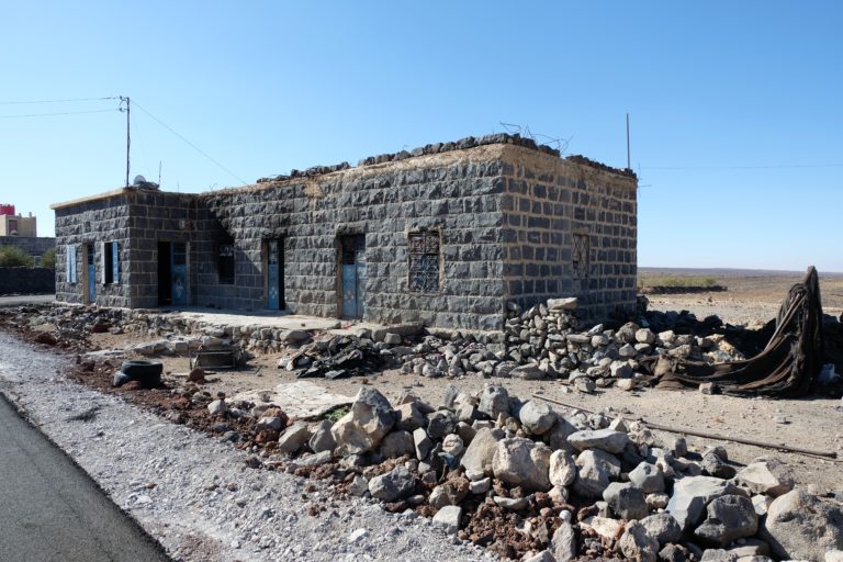 As I walked away from the stone “Bedouin” house that had been witness to such bloodthirsty brutality and violence, I spotted a flower stubbornly clinging to the wall outside. This is the spirit that has borne Syria through this 8 year war with such dignity and honour. The desire to defend their roots, to live and to love life against all odds.