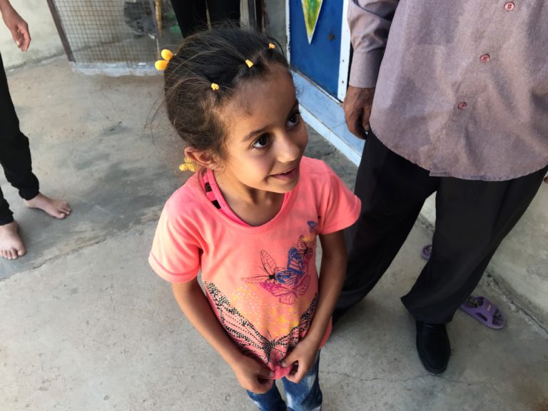 Entering the home of Ziad Saab and greeted by his daughter Kinda. (Photo: Vanessa Beeley)