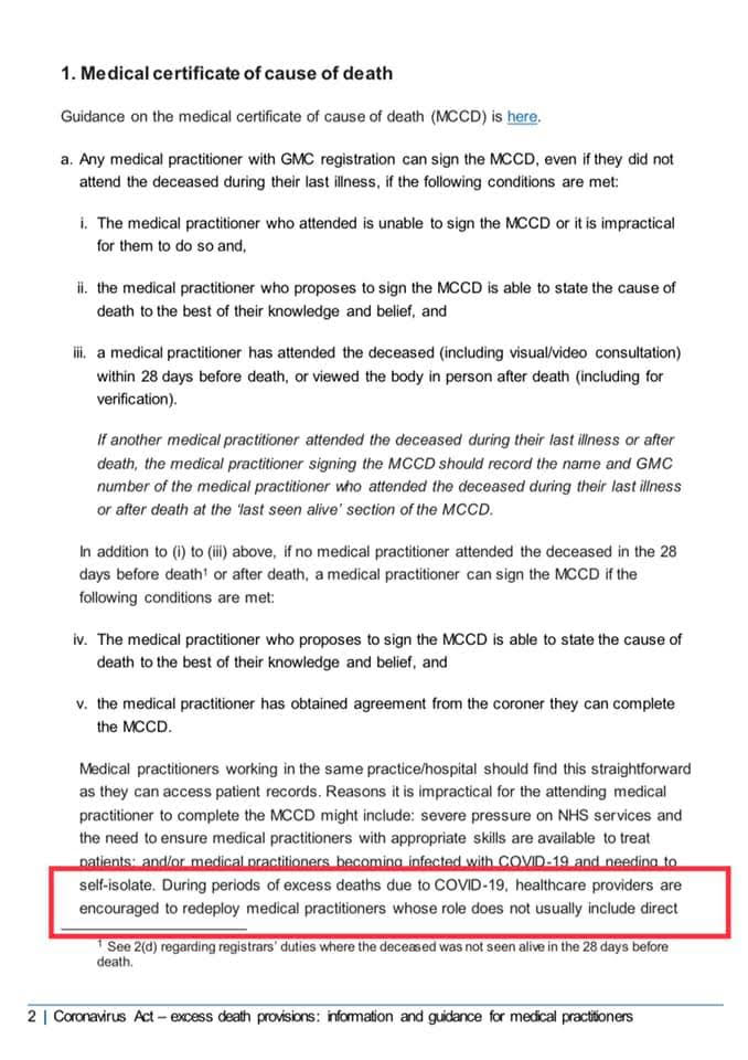 As we head in to winter watch death statistic manipulation go into overdrive, check out this “Medical Practitioners” guidance on death provisions.