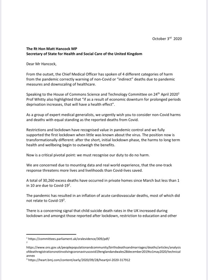 It’s not as forthrightly sceptical as I’d like – the docs say they supported the first lockdown – but the reasonableness of its tone may end making it more effective. And the message is clear: the harm the restrictions are doing to the public’s health outweighs the harm they are supposedly preventing. full text of the letter below.