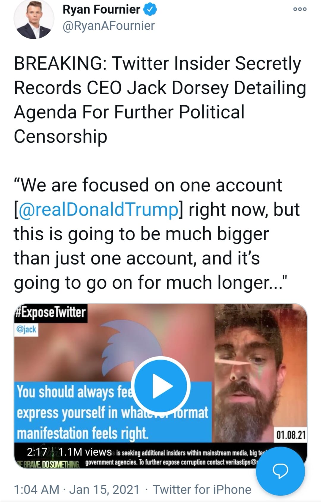 Pingback: Twitter insider leaks video of Jack Dorsey planning political censorship – donshafi9️⃣1️⃣1️⃣
