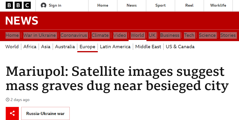 “According to Western media, now copy-paste reporting the same claims, Russian forces apparently secretly buried *up to 9,000 Mariupol civilians* in “mass graves” in a town just west of the city. Except, it never happened, there is no mass grave.
