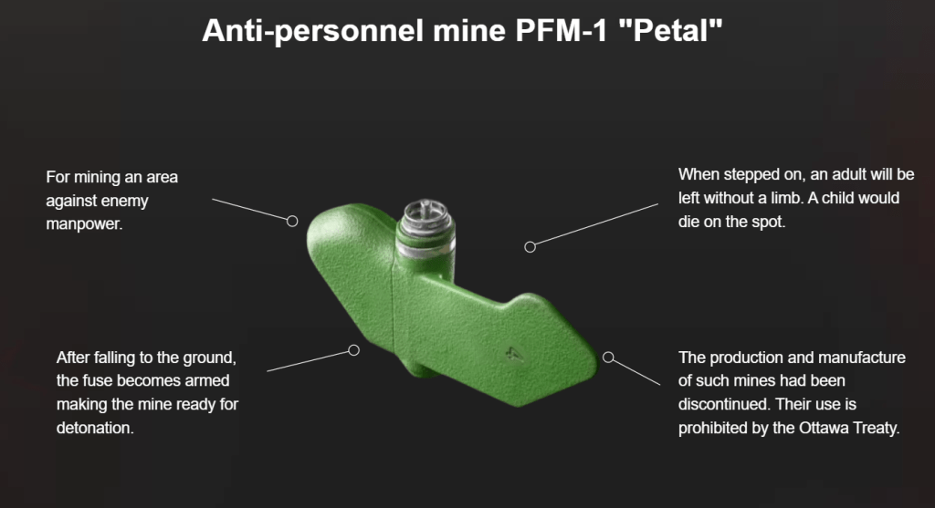 Gagin points out that the Ukrainian forces have used other prohibited weapons against civilian targets which include lethal petal mines described by journalist Eva Bartlett on one of her many visits to Donetsk. Flechette shells have also been used: