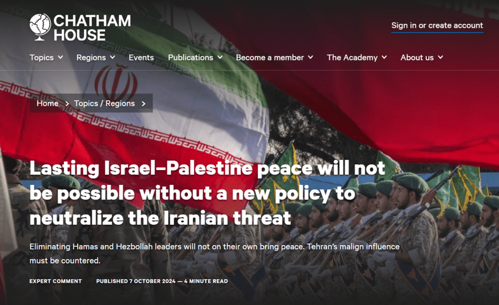 There was a time when Chatham House enjoyed widespread international respect for its objective analyses, despite its always being effectively the in house think tank for the Foreign Office. That time is no more. Chatham House is now Israeli-occupied territory.