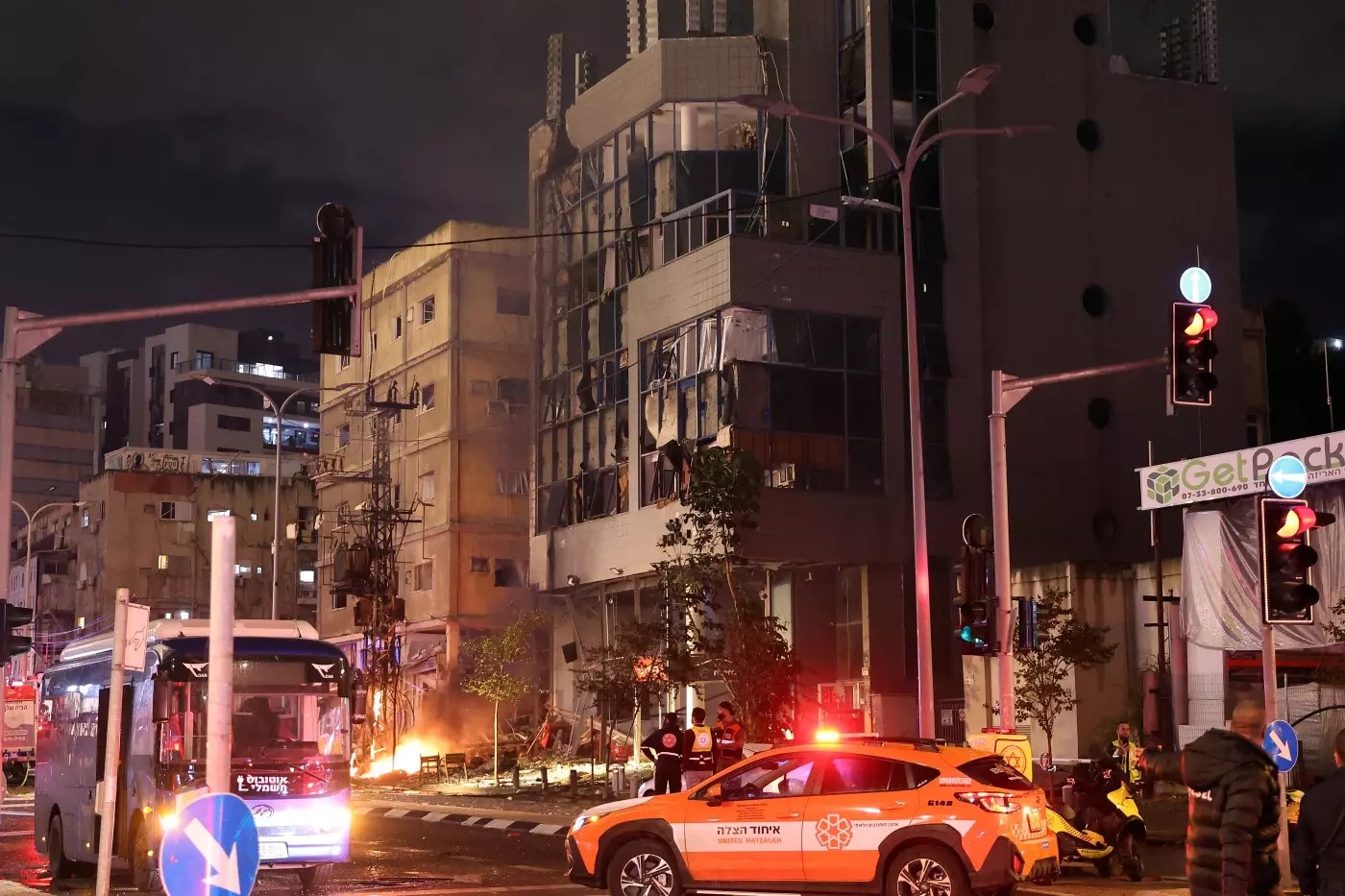 Ramat Gan in Tel Aviv after Hezbollah ballistic missiles targeted security buildings.