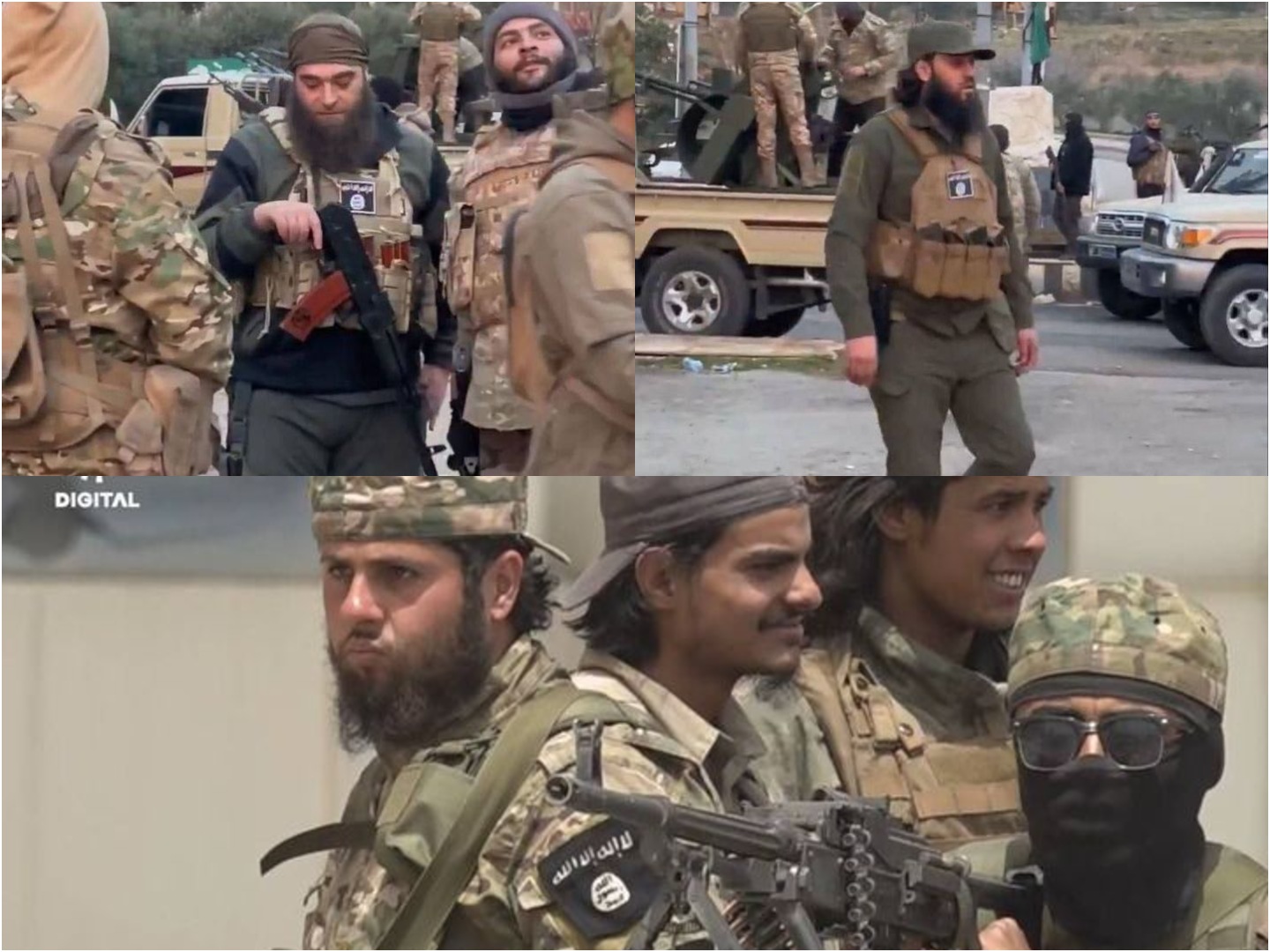 Collage of ISIS patches on HTS General Security uniforms