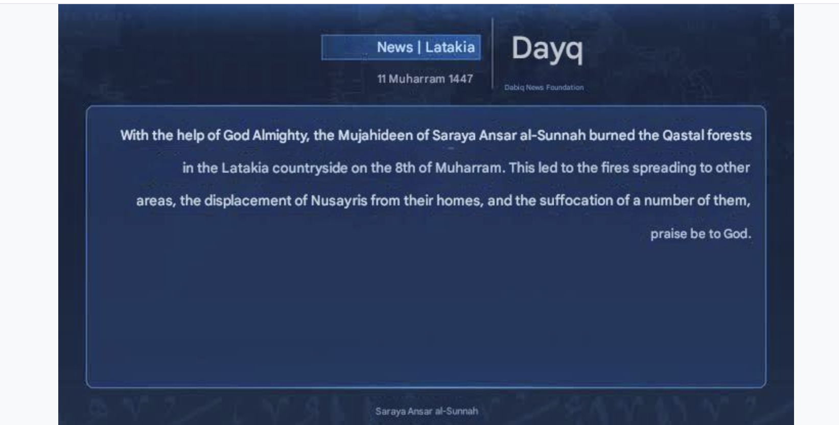 They are a faction that was known to have split from the Jolani/MI6-rebranded Hayat Tahrir al-Sham (HTS) to follow the path of sectarian Takfiri policies after the fall of Damascus. Prior to this, it is believed the group cooperated with HTS to recruit terror cells that operated in the Assad-government protected areas.