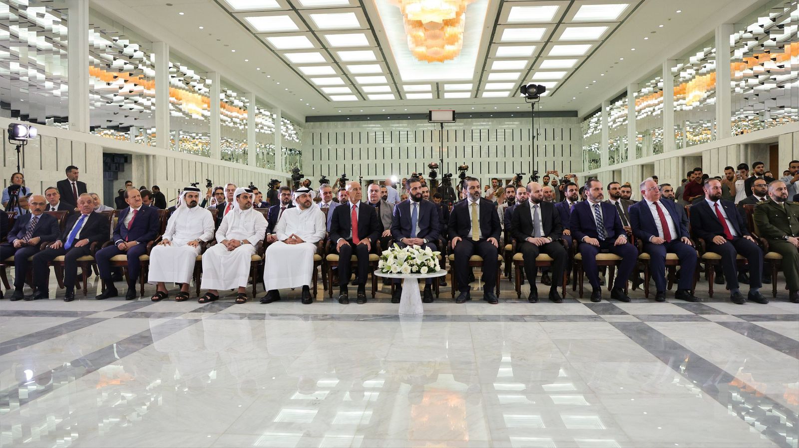 The photo below is from a press conference by the Energy Minister, Eng. Mohamed Al-Bashir, and the CEO of UCC and Power International Holding, Mr. Ramez Al-Khayyat, at the People’s Palace, Damascus, after signing MoUs with international companies in the field of energy.
