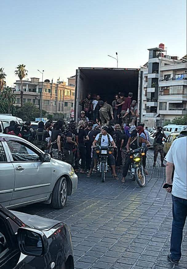 Syrian Sunnis also fear that they will be targeted once the campaigns against the minorities begin to wane. A group of these tribes attacked a peaceful sit-in in front of the Syrian People’s Assembly, in which demonstrators demanded an end to fighting and bloodshed and called for reconciliation and dialogue among Syrians. People fear speaking publicly about their opposition to Jolani and the Tribal factions that have now flooded Damascus society, but behind closed doors, resentment is smouldering. In the photo below, you can see a gathering of tribesmen in Qassaa, Damascus — a predominantly Christian area of the Old City.