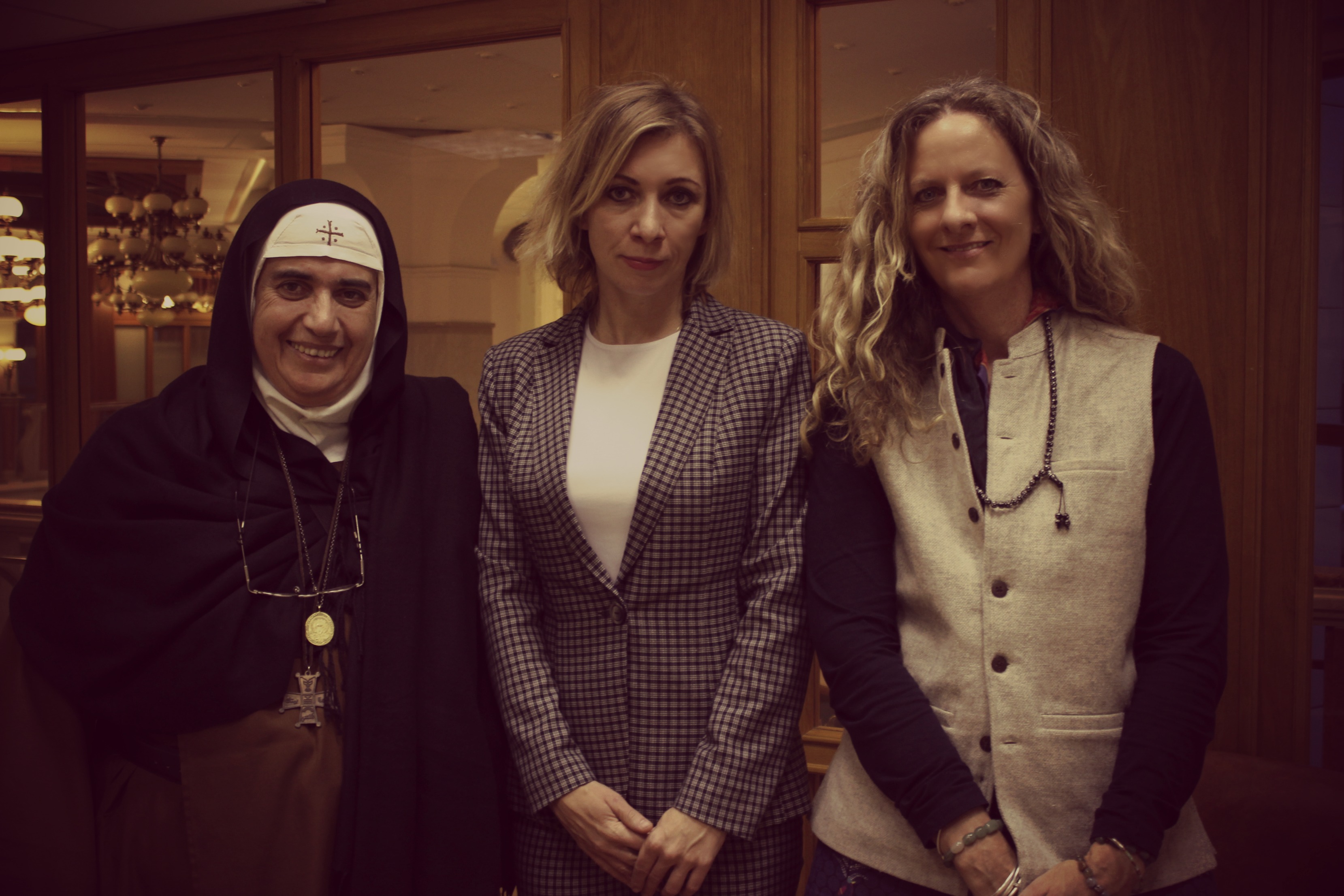 November 2016 – I was invited to Moscow, Russia with Mother Agnes de la Croix to repot on the illegal NATO state intervention and dirty war on Syria. During this time I met with deputy FM, Mr Bogdanov and MFA spokeswoman, Maria Zakharova.